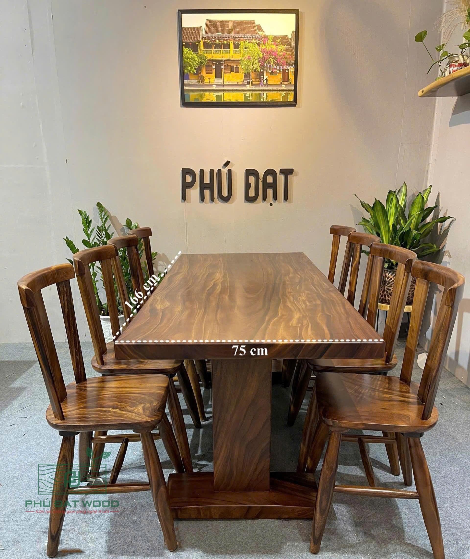 Bộ bàn ăn gỗ me tây nguyên khối PĐ 166X75